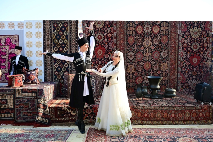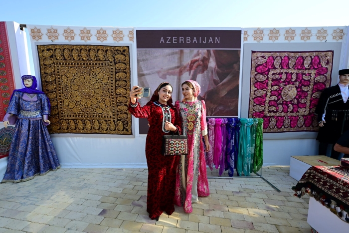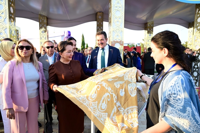 The opening of the exhibition titled “Pearls of Azerbaijan’s National Heritage” attracted great interest from visitors. The exhibition featured samples of Azerbaijani carpet weaving traditions and various regional carpet schools, national costumes, kelagayi (silk headscarves), stained glass art (shebeke), and embroidery masterpieces.