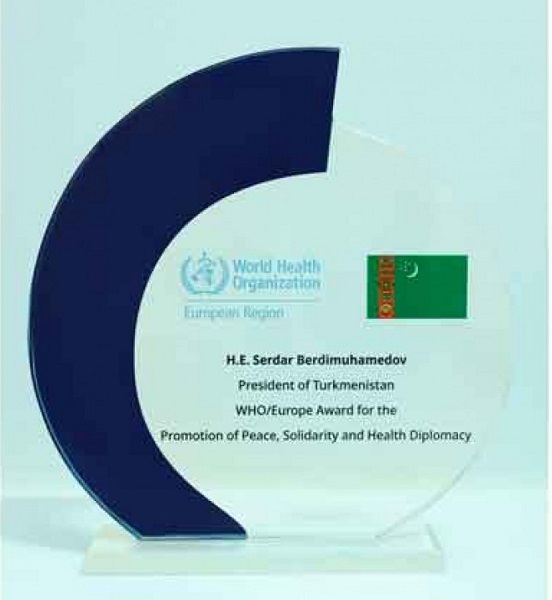 The President of Turkmenistan has been honored with a special award from the World Health Organization (WHO) “For contribution to the promotion of peace, unity, and diplomacy in healthcare.”