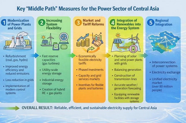 Thus, the integral “Middle Path” strategy can provide Central Asia with the modernization of its energy infrastructure, a reliable and affordable power supply, a reduced carbon footprint, and an energy transition without shocks—benefiting the economy while meeting climate commitments.