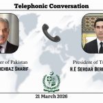 Президент Туркменистана Сердар Бердымухамедов и Премьер-министр Пакистана Мухаммад Шехбаз Шариф провели телефонный разговор по случаю праздника Ид аль-Фитр 21 марта 2026 г., сообщает офис Премьер-министра. Премьер-министр выразил поздравления с праздником Ид аль-Фитр Президенту Туркменистана, руководству страны и братскому туркменскому народу. Президент Туркменистана также … [Read more...]